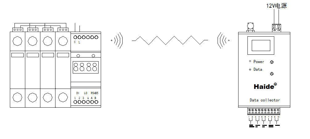 首先把雷擊計(jì)數(shù)器固定在防雷器旁邊,從防雷器的遙信告警常開端子上引出2條信號(hào)線鏈接到計(jì)數(shù)器(1-2)接線端子上;然后把計(jì)數(shù)器的雷擊感應(yīng)器套在防雷器接地線上,再把雷擊感應(yīng)器引出線接到計(jì)數(shù)器的(3-4)端子上;從計(jì)數(shù)器的(A-B)RS485信號(hào)端子上,引出2條信號(hào)線,鏈接到需要接收計(jì)數(shù)器數(shù)據(jù)的設(shè)備對(duì)應(yīng)端口;設(shè)備上電看到數(shù)據(jù)正常顯示即可完成安裝。