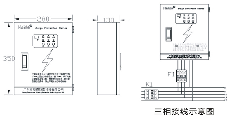 電源相線(L)、零線(N)分別接入電涌保護(hù)器相應(yīng)接線端子,保證牢固及可靠,將避雷器接地端與防雷地線(推薦接地電阻≤4Ω)作良好電氣連接。