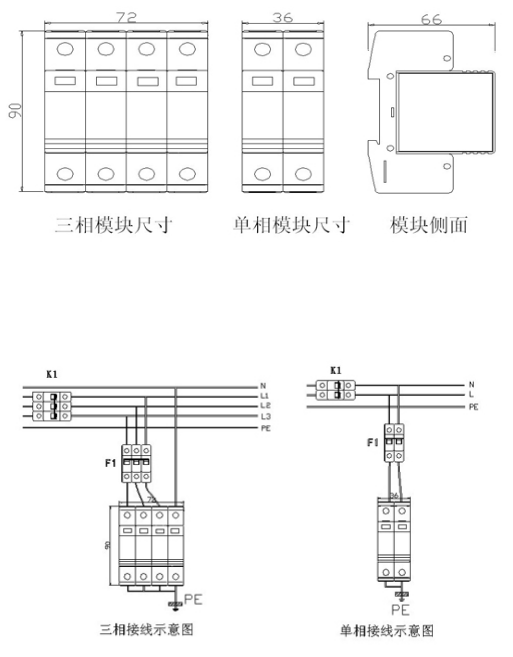電源相線(L)、零線(N)分別接入電涌保護器相應(yīng)接線端子,保證牢固及可靠,將避雷器接地端與防雷地線(推薦接地電阻≤4Ω)作良好電氣連接。