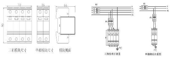 電源相線(L)、零線(N)分別接入電涌保護(hù)器相應(yīng)接線端子,保證牢固及可靠,將避雷器接地端與防雷地線(推薦接地電阻≤4Ω)作良好電氣連接。