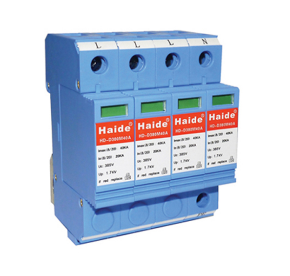 Electric surge protector of low-voltage distribution system is design according to IEC standard.It has invalidation detection indication,standard modularization installation,changeable lightning protection module and powerful discharge capacity of lightning current.It’s appliable to the protection of buildings’ general supply system against lightning.With 35mm standard guide-way,this lightning arrester is very convenient to be maintained.It connects with the circuit in parallel and has no limit to the power of equipment fixed later.